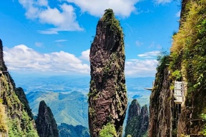 莽山新十景【五指峰]五景区坐拥大莽山核心精华景观、莽山五指峰高空栈道、天台山、金鞭峡谷、摩天岭、八卦台、心心心相印倒影池、流浪地球同款垂直电梯、观音古寺及万寿塔、莽山奇松、莽山云南日出、高空索道等数十个景点。景区先后荣获“全国首家无障碍山岳旅游景区”、“全国首家无障碍山岳型景区”,成为世界上第一个实现无障碍旅游的景区。乘五指峰索道+环保车上山、五指峰索道为全国单线最长索道缆车索性道全长3.7公里,全国单线早长;每小时客运量可达2000人,全国功率最大;全球索道极限高差,达1000米,创造了全国及至全球索道领域的多项第一,堪称“世界一流,中国第一”五指峰索道,上下穿梭,一索飞渡,腾云驾雾,仅需十几分钟,就到五指峰核心景区,莽山新十景一一亮相在你眼前。