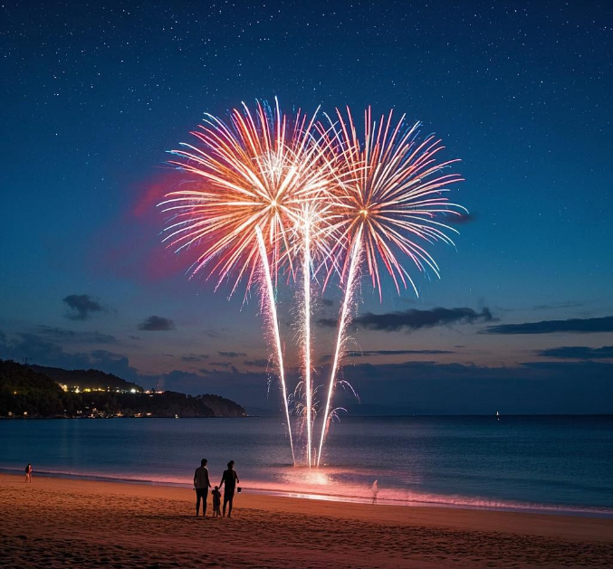 00:00 烟花秀 在沙滩指定安全区域集体放烟花,倒计时迎接新年,新年许愿。