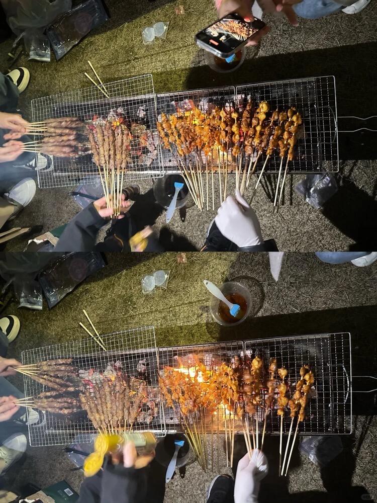 22:30左右到达(已预留1.5小时堵车)开始烧烤,提供丰富食材与多种酱料,自己动手烧烤(提前分好组会烤不会烤的均衡一下),户外音响欢唱,可单人、多人合唱, 互动游戏 组织“你划我猜”“逢8必喝”等互动游戏(自愿参与,I人友好),可自由活动,拍照打卡,提供仙女棒玩耍。