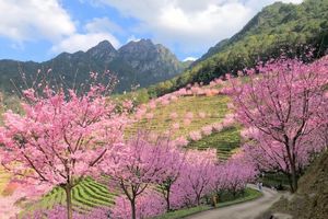 09:00左右阴那山樱花园赏樱花,主要有红粉佳人、本地山樱、牡丹樱、香水樱等品种。