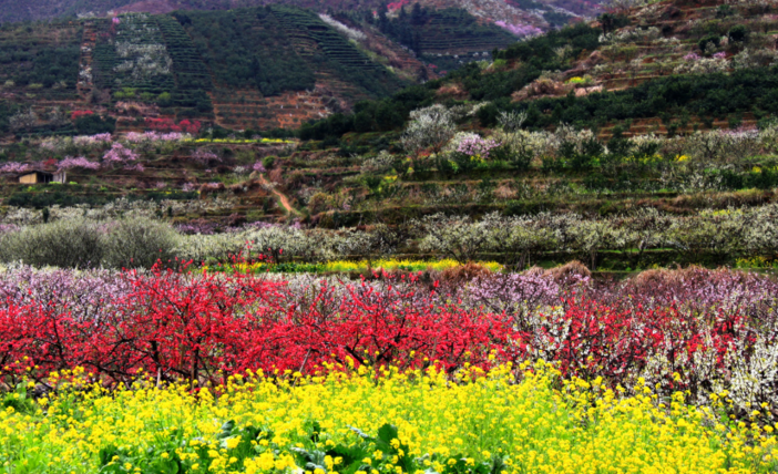 10:30 左右集合,领队带大家沿花海主线徒步进入- 遗世明珠的茶料村,感受桃李花开满天下的春天;漫步在九峰乡村田野间,漫山遍野的桃花,梨花,菜花,野花,一副世外桃源的画卷...让我们穿行在春天里,走在乡间的云里雾里,穿行于田间地头的花丛中;寻找最佳拍摄地点, 赏大片天然花海,可跟上领队到山顶拍全景。