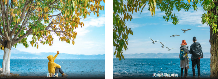 抚仙湖的美,是古人眼中“琉璃万顷”的浩渺,是《徐霞客游记中》“惟抚仙湖最清”的赞叹,是杨升庵“天然图画胜西湖”的惊艳。游览抚海湾湿地公园,这里有粉蓝的湖水,飞舞的海鸥,木质的栈道,治愈的大树,浪漫的花海。站在湖边,风从耳旁呼啸而过,冬天会迎来成群结队的海鸥环绕在身旁。