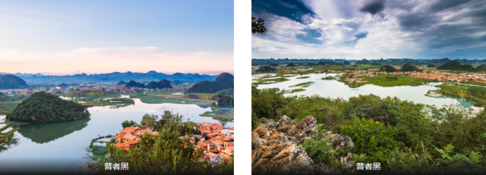 后前往游览菜花箐/青丘——探寻电视剧《三生三世十里桃花》影视拍摄地,站在山上俯瞰,远处孤峰林立,薄雾缭绕,山下湖光潋滟,炊烟袅袅,一派亦真亦幻的山水田园风光。晨起理荒秽,带月荷锄归,这里不是世外桃源,却有着最诗意的生活。