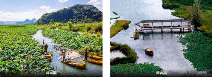 乘车前往【普者黑风景区】,被国家建设部称为中国独一无二的山水田园风光。湖中的水清澈见底,当游客在湖面上泛舟,水中鱼游虾潜,花漂草浮,均可让人一览无遗夏季万亩荷花清香四溢,民风民俗原汁原味,呈现出秀奇古幽的天然景色,形成“三区二瀑”的格局,观青龙山 ,以“水上田园、湖泊峰林、彝家水乡、岩溶湿地、荷花世界、候鸟天堂”六大景观而著称。