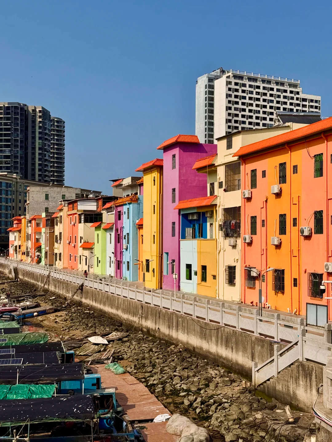 13:00 左右出发包禾塘彩色屋,彩色的房子+停在港湾的蓝色渔船拍照打卡之地。一路顺海边走,经过黄金海岸(1期,二期),