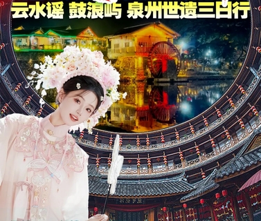 上午:抵达泉州后,首先前往【浔埔村】,这里是国家级非遗“簪花围”的发源地,免费开放,独具特色的渔乡村落,错落分布着以蚝壳筑成的“蚝壳厝”,这些以蚝壳筑成的民居在阳光下泛着珍珠光泽,是海丝文化的独特印记,也是浔埔村的标志性景致,顺济宫附近的老屋群纹理最美,触摸墙面便能感受岁月的厚重。可自由体验浔埔女“簪花围”造型(费用自理),用应季鲜花盘出独具特色的“头上花园”,搭配闽南特色服饰,在蚝壳厝小巷、渔港码头打卡拍照,下午4点后渔船归港,海面金黄一片,拍照氛围感封神,还能漫步渔村,感受原生态的渔家生活气息,解锁闽南渔家风情大片,沉浸式感受海丝文化下的渔家韵味。