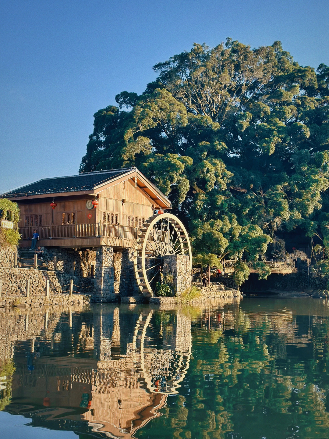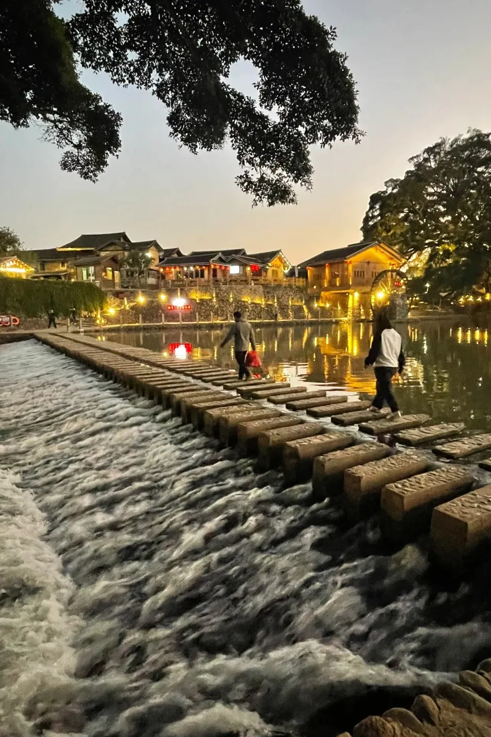 下午:进入【云水谣古镇】,开启深度漫游(核心景致免费,无收费景点)。云水谣作为世界文化遗产地,以千年鹅卵石古道、百年老榕、清澈溪流为核心,山水相依、古朴静谧,也是电影《云水谣》的取景地。漫步千年鹅卵石古道,脚下是被岁月磨得光滑的石子,身旁是枝繁叶茂的百年老榕,溪水潺潺流淌,滋养着两岸的原生态客家民居,青瓦夯土的房屋错落有致,尽显客家建筑特色。无需进入收费土楼,仅在古镇核心区域游览,即可沉浸式感受田园诗意与古村静谧,还能偶遇当地客家村民,体验原生态的乡村生活,打卡古村标志性景致,定格古村美好瞬间。夜幕降临后,云水谣的夜色愈发温柔,灯光点缀着溪流与古榕,晚风拂面,静谧而惬意,可漫步古村街巷,感受古村夜景的独特韵味。